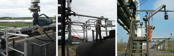 主要用于能夠精確定位的鐵路槽車通過(guò)上部穹頂進(jìn)行灌裝或卸料的場(chǎng)合。這種單臂配置也可以用于公路槽車的用途。單一灌裝臂可允許一定的車位偏差,艙蓋開(kāi)口直徑越大,允許的偏差也越大。