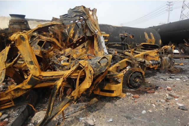事故中損毀的罐車(chē)
