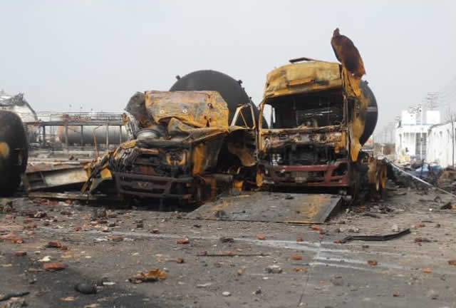 就在不久前的2017年6月5日凌晨1時(shí)左右,位于山東省臨沂市臨港經(jīng)濟(jì)開(kāi)發(fā)區(qū)的金譽(yù)石化有限公司發(fā)生重大爆炸著火事故,事故造成10人死亡、9人受傷。事故的初步直接原因是:一輛運(yùn)載液化氣罐車(chē)在卸車(chē)棧臺(tái)卸料時(shí),快速接頭卡口未連接牢固,接頭處發(fā)生斷開(kāi)造成液化氣大量泄漏,液化氣與空氣形成爆炸性混合氣體,遇點(diǎn)火源發(fā)生爆炸,引發(fā)裝卸區(qū)內(nèi)其他罐車(chē)相繼爆炸,爆炸碎片擊中并引燃廠(chǎng)區(qū)多處裝置或設(shè)備。